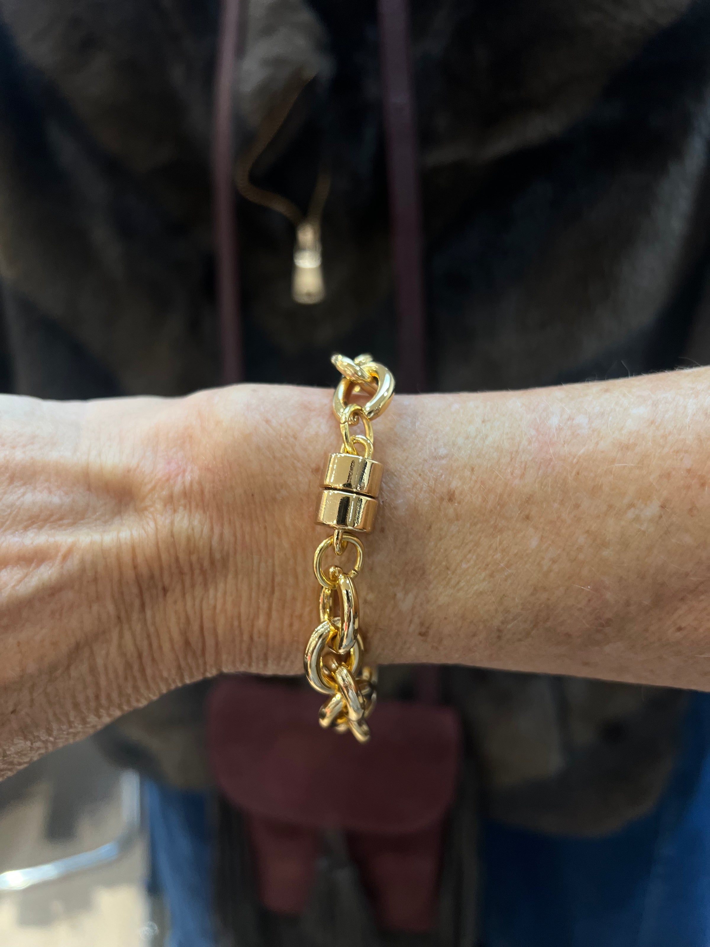 A bold, chunky bracelet with a timeless design, both striking and effortless. No more fussing with clasps; its magnetic closure makes it easy to wear. Stunning on its own or layered with your favorite watch and bracelets.